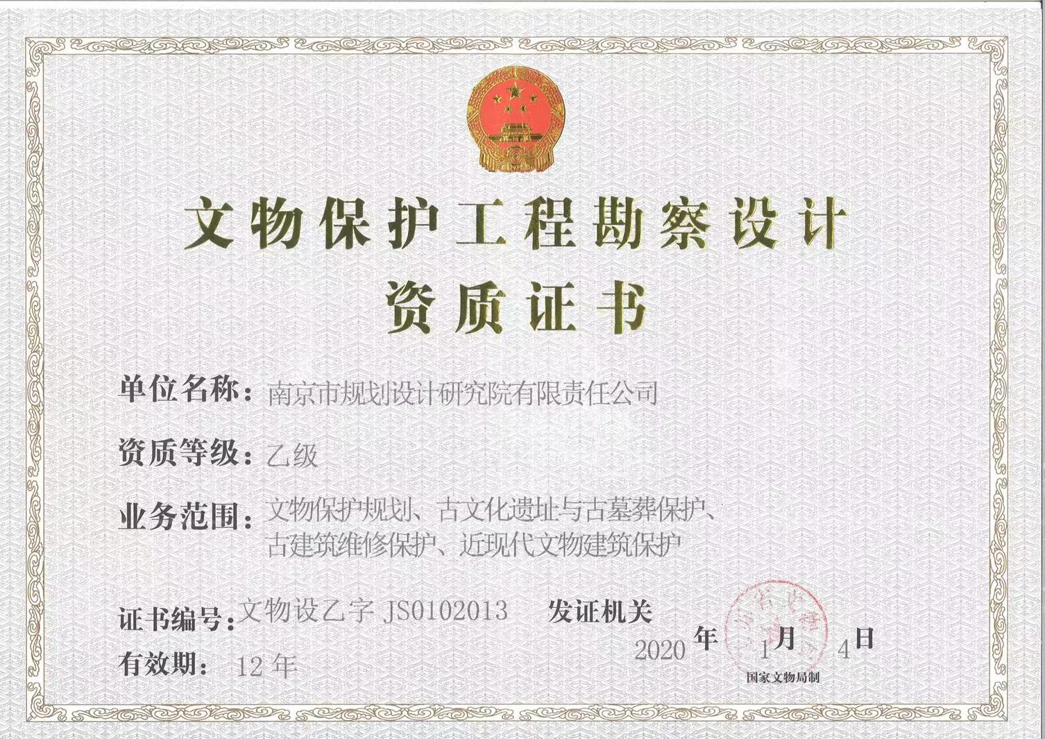 文物保護(hù)工程勘察設(shè)計(jì)資質(zhì)證書